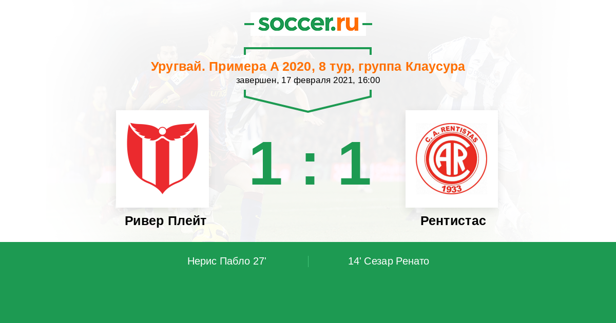 14' (0:1) Сезар Ренато (16)