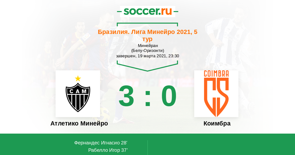 Матчи Бразилия. Лига Минейро 2021