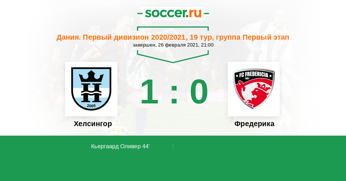 44' (1:0) Кьергаард Оливер