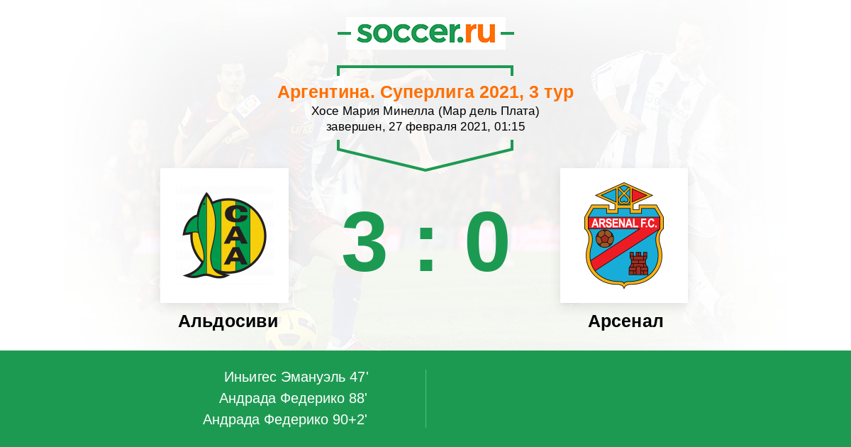 90+2' (3:0) Андрада Федерико (7) (Роман Фернандо (28))