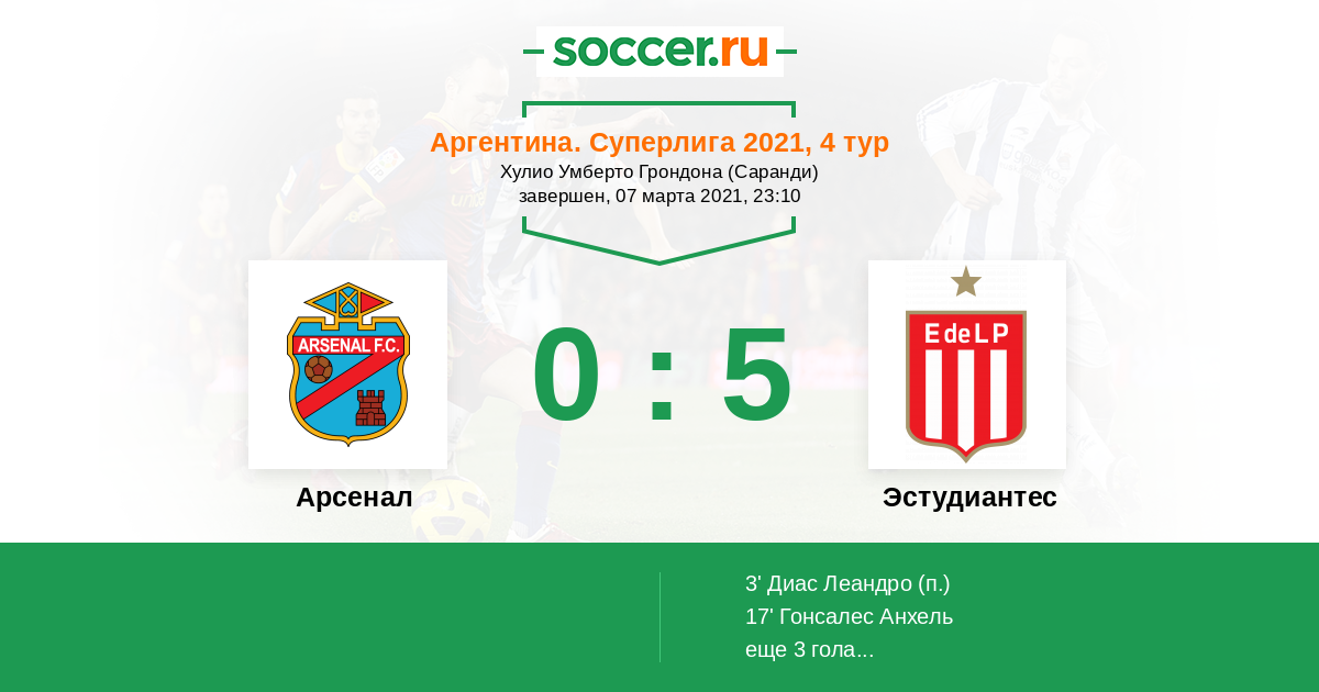 53' (0:4) Диас Леандро (27) (Гонсалес Анхель (8))