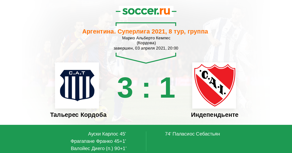 74' (2:1) Паласиос Себастьян (34) (Ортега Томас (3))