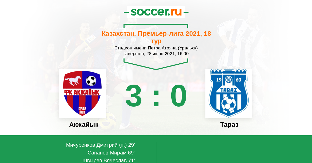 "Акжайык" худо-бедно продолжает держаться в топ-4, в прошлом туре наконец сыграв вничью впервые за весь сезон. В остальном все стабильно — "Акжайык" по-прежнему самая скучая команда сезона, забили они даже меньше, чем "Жетысу", который находится на последнем месте, и лишь топовая оборона и сушка матчей помогает им держаться на плаву. "Тараз" не из тех команд, что способны доставлять проблемы организованным командам, а хозяева именно таковой командой и являются. Поэтому здесь исход простой — "Тараз" продолжит падение, а "Акжайык" удержится в топ-4, победив, как водится, минимально. И скучно.