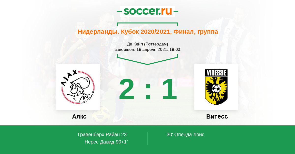 Аякс» меньше отдыхал, ведь в четверг до позднего вечера амстердамская команда билась с римской «Ромой» за выход в полуфинал Лиги Европы. Несмотря на все старания, совершить камбэк после домашнего поражения не удалось. В Эредивизи «красно-белые» без пяти минут чемпионы, в прошлом туре команда сделала ещё один шаг к досрочному титулу, сломив в гостях сопротивление «Валвейка». Во внутренних турнирах «Аякс» не знает горечи поражений с начала декабря прошлого года, когда уступил дома «Твенте».Меньше «Витесса» в текущем розыгрыша нидерландского чемпионата пропускает только «Аякс». Стоит ли ожидать результативной перестрелки? Учитывая, что цена ошибки слишком велика, а раскрываться не в ущерб себе в матчах против «Аякса» мало кто может, на этот счёт есть большие сомнения.
