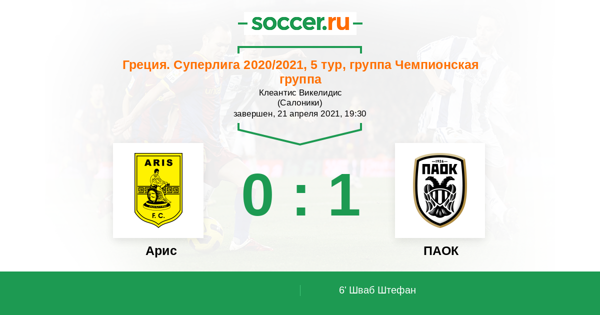 6' (0:1) Шваб Штефан (22) (Швидерски Карол (9))