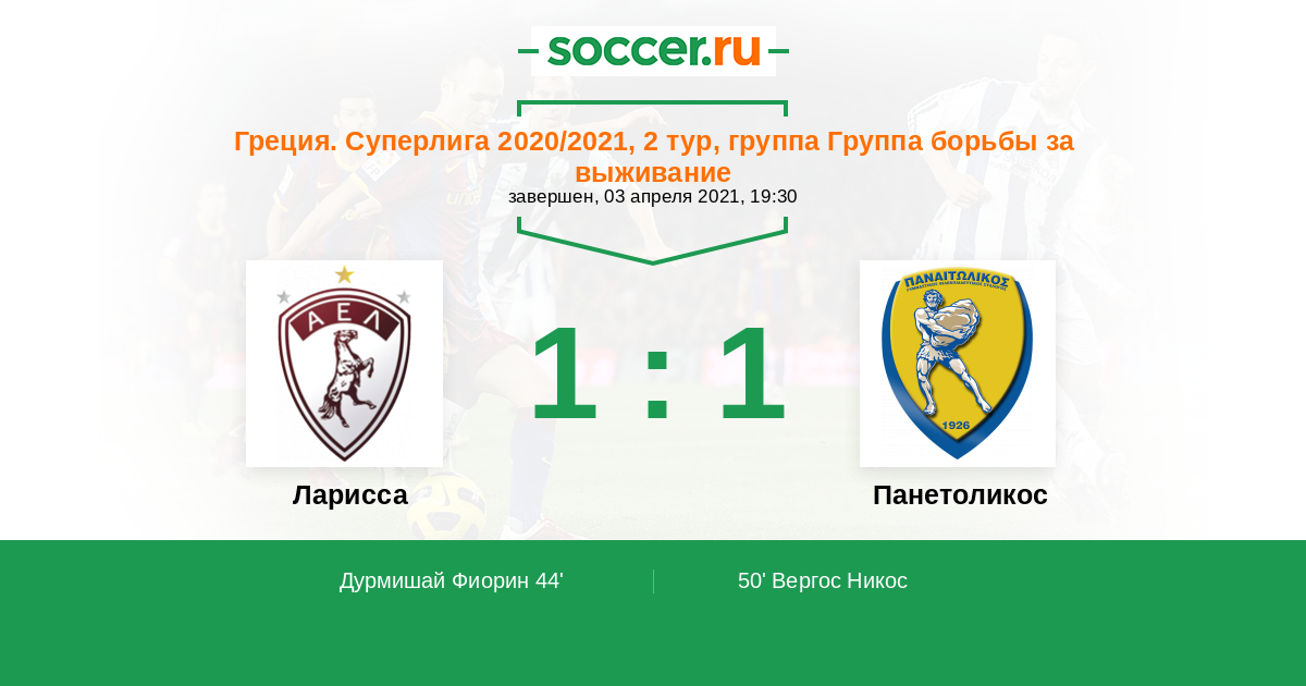 50' (1:1) Вергос Никос (29) (Мендоса Хавьер (30))