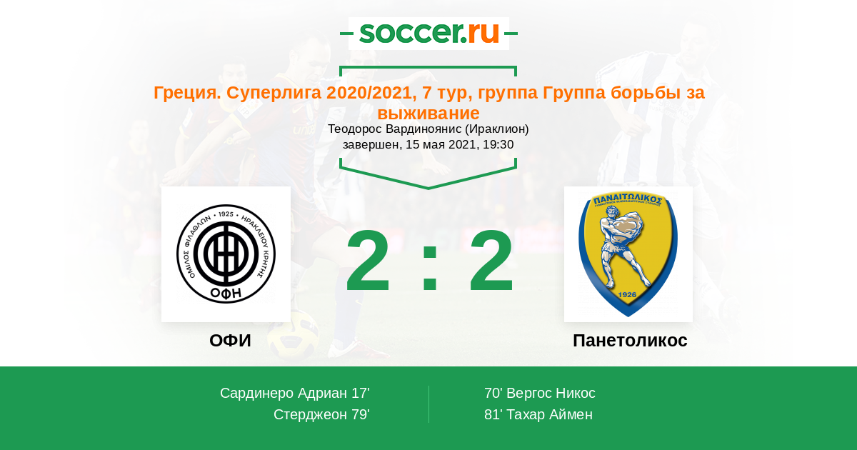 17' (1:0) Сардинеро Адриан (22) (Коровесис Николаос (34))