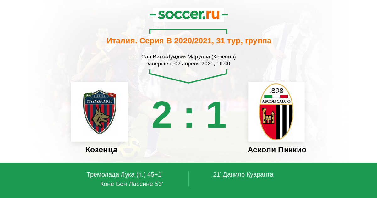 53' (2:1) Коне Бен Лассине (25) (Крекко Лука (26))