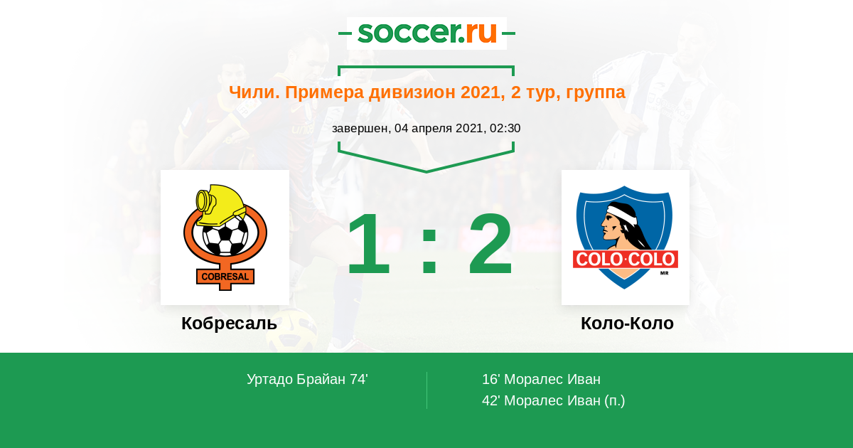 74' (1:2) Уртадо Брайан (15) (Варас Себастьян (14))