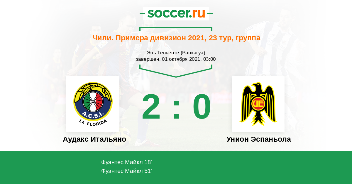51' (2:0) Фуэнтес Майкл (27) (Монтесинос Хоакин (18))