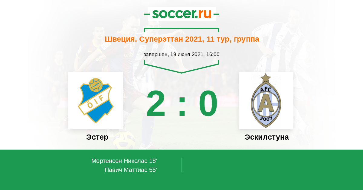 18' (1:0) Мортенсен Николас (19) (Нордстрем Билли (27))
