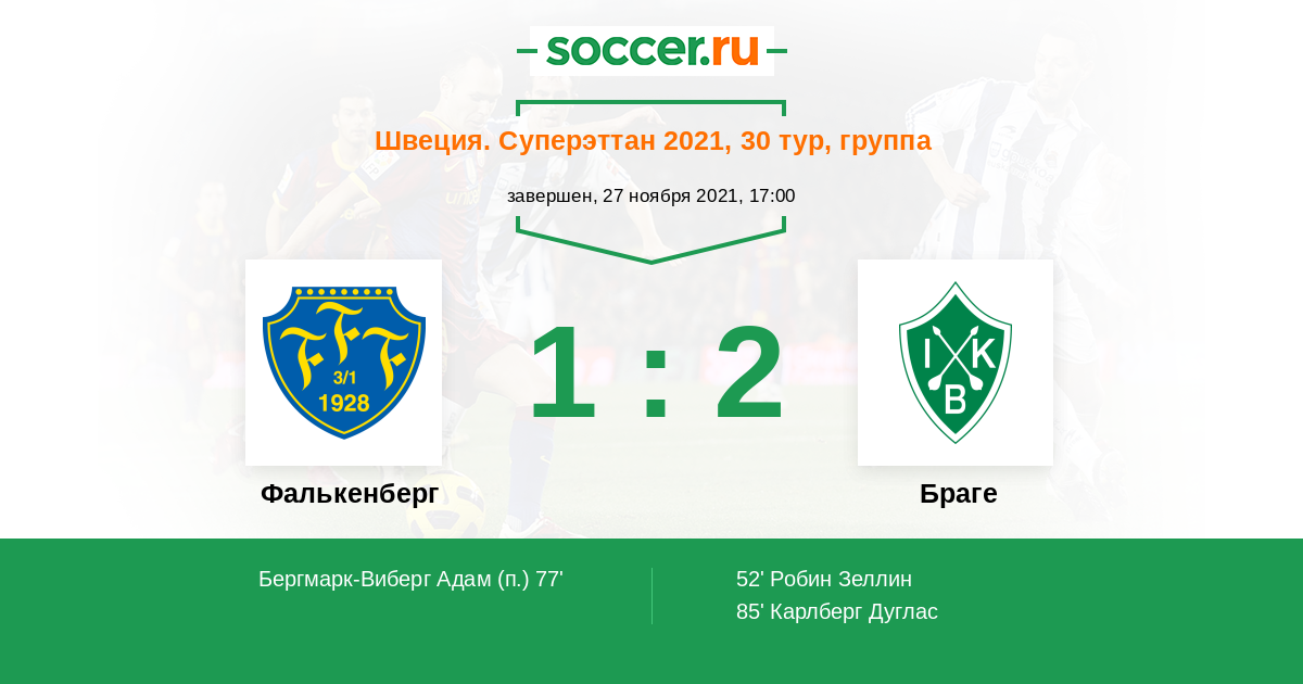 85' (1:2) Карлберг Дуглас (9) (Камп Андре (16))