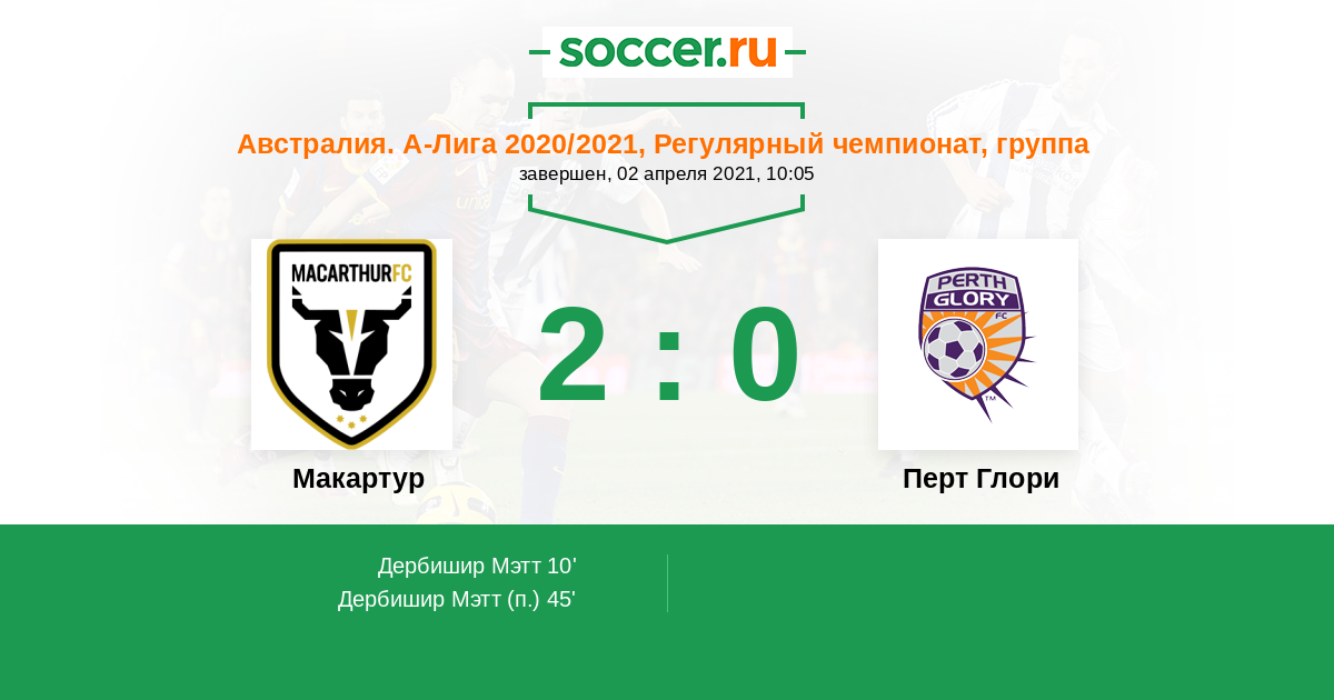 10' (1:0) Дербишир Мэтт (27) (Франьич Иван (7))