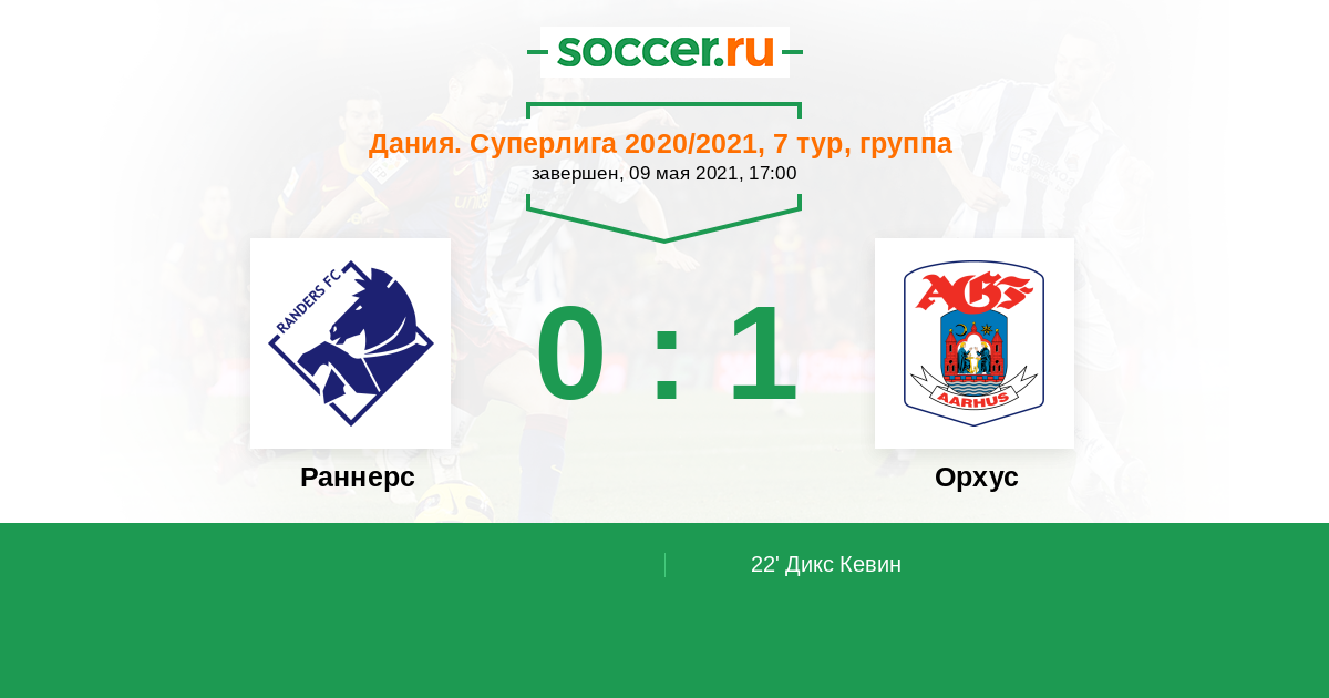 22' (0:1) Дикс Кевин (34) (Хойер Каспер (16))
