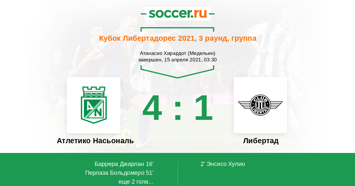 2' (0:1) Энсисо Хулио (19) (Вильяльба Эктор Даниэль (23))