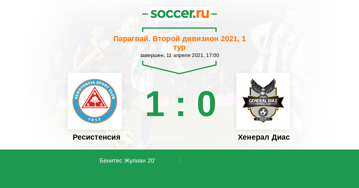 20' (1:0) Бенитес Жулиан