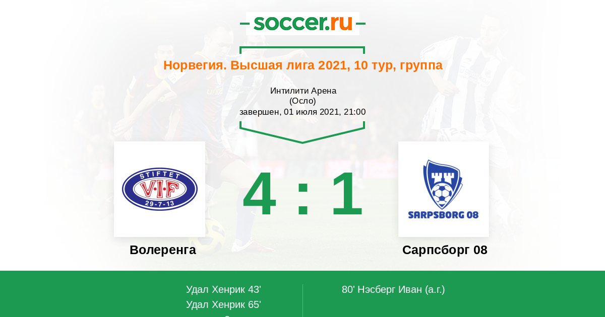 80' (4:1) Автогол Нэсберг Иван (22)
