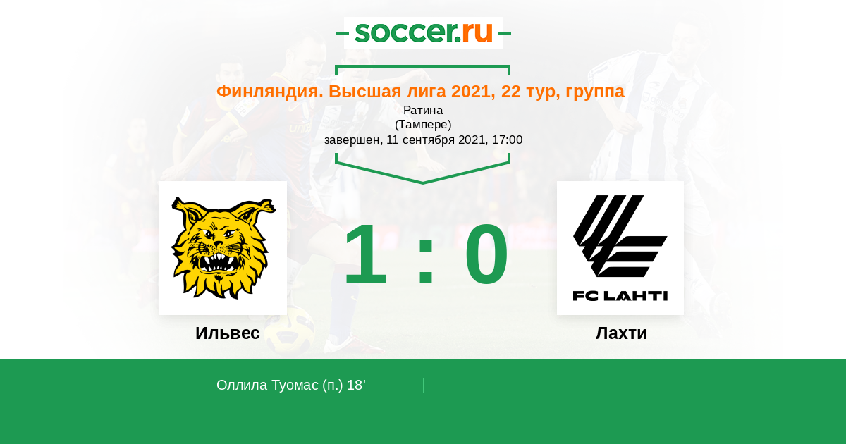 18' (1:0) Оллила Туомас (2)