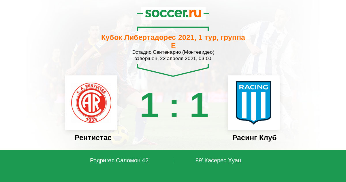 89' (1:1) Касерес Хуан (2) (Ловера Максимилиано (34))