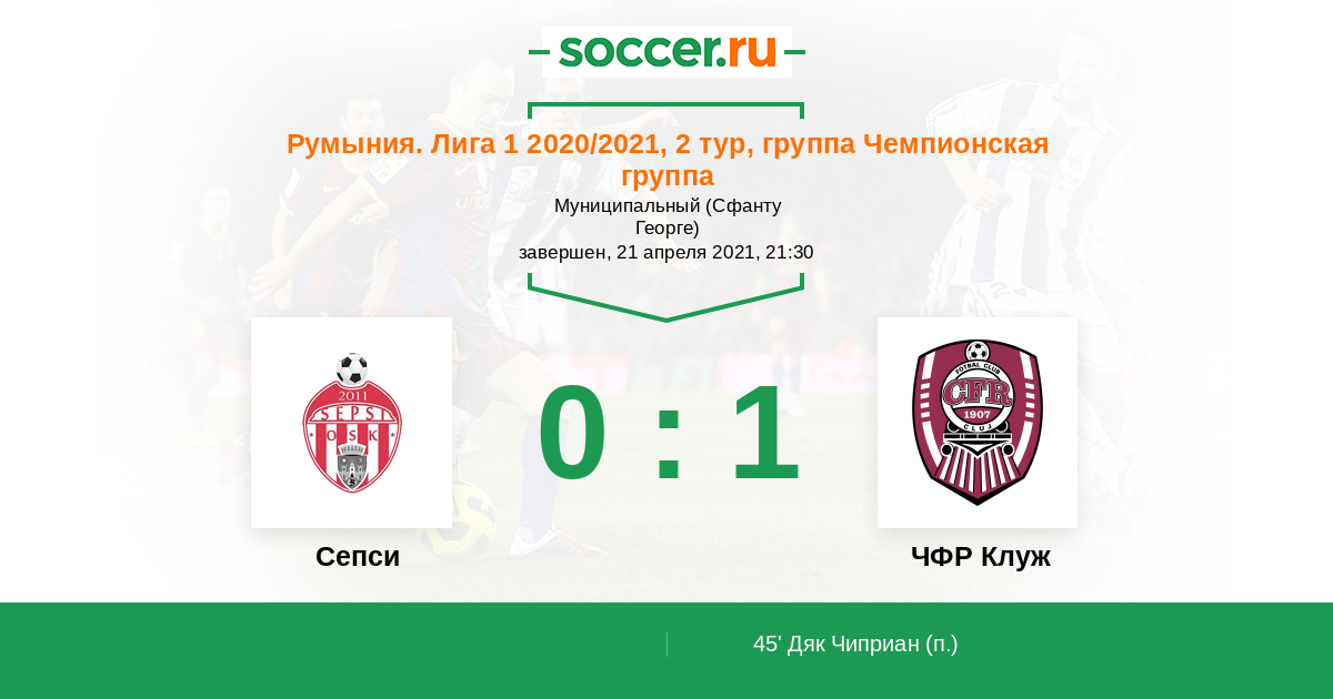 45' (0:1) Дяк Чиприан (10)