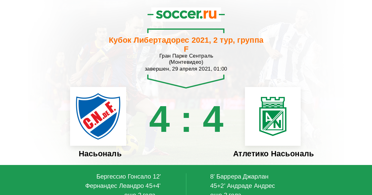 45+4' (2:2) Фернандес Леандро (18)