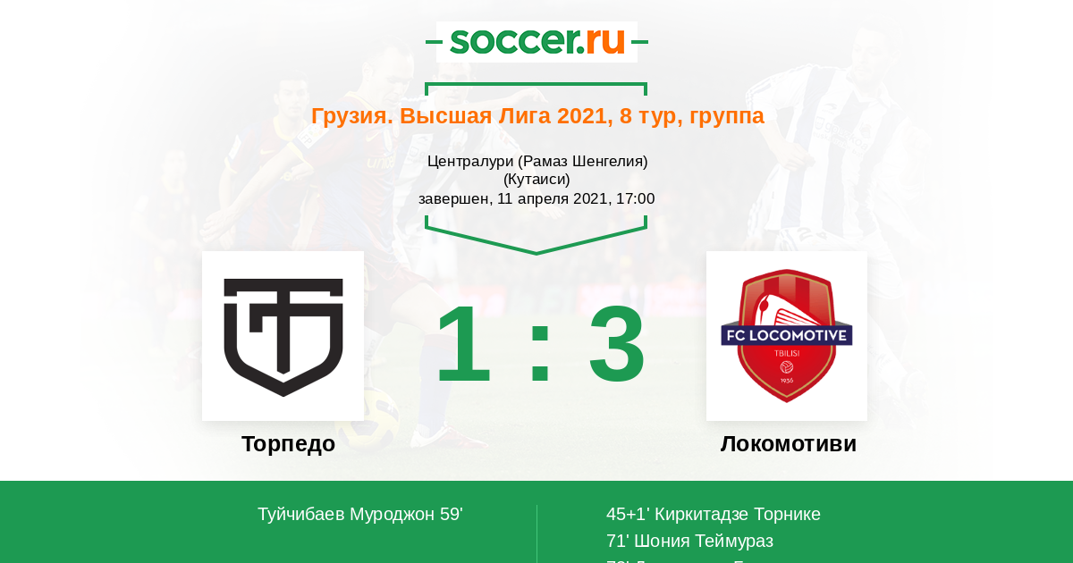 71' (1:2) Шония Теймураз (11) (Сихарулидзе Ираклий (7))