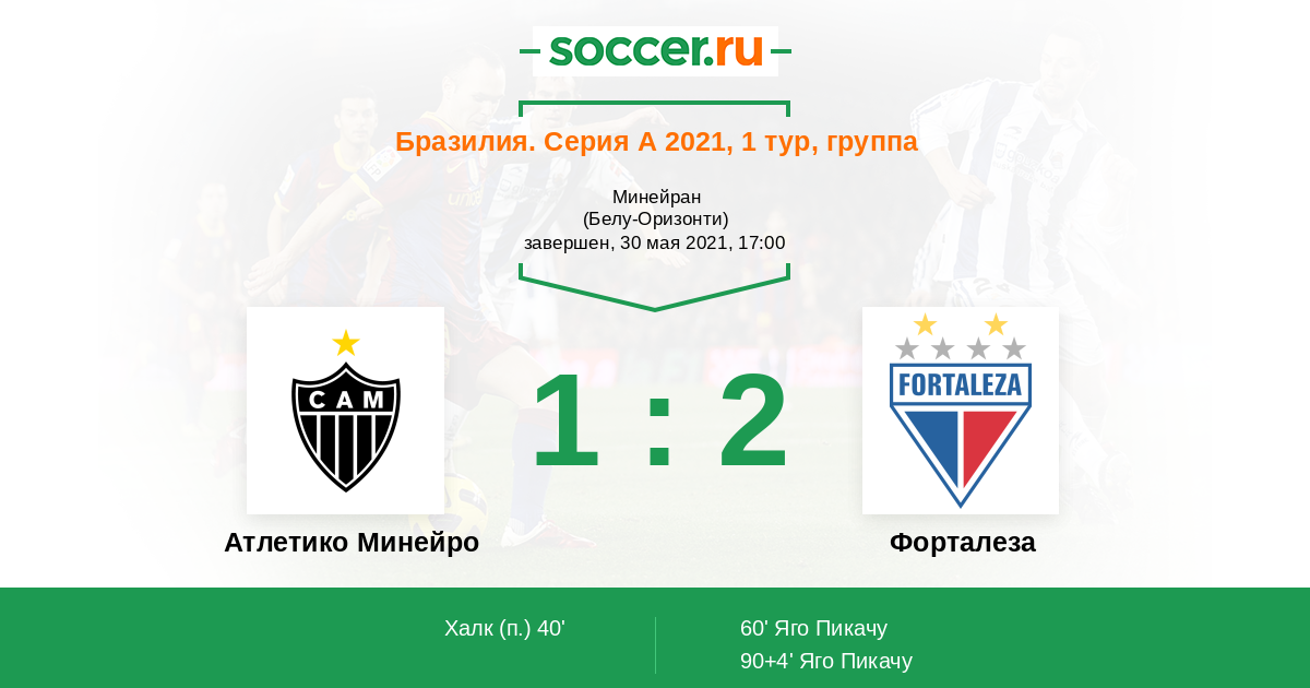 60' (1:1) Яго Пикачу (22) (Робсон дос Сантос (7))
