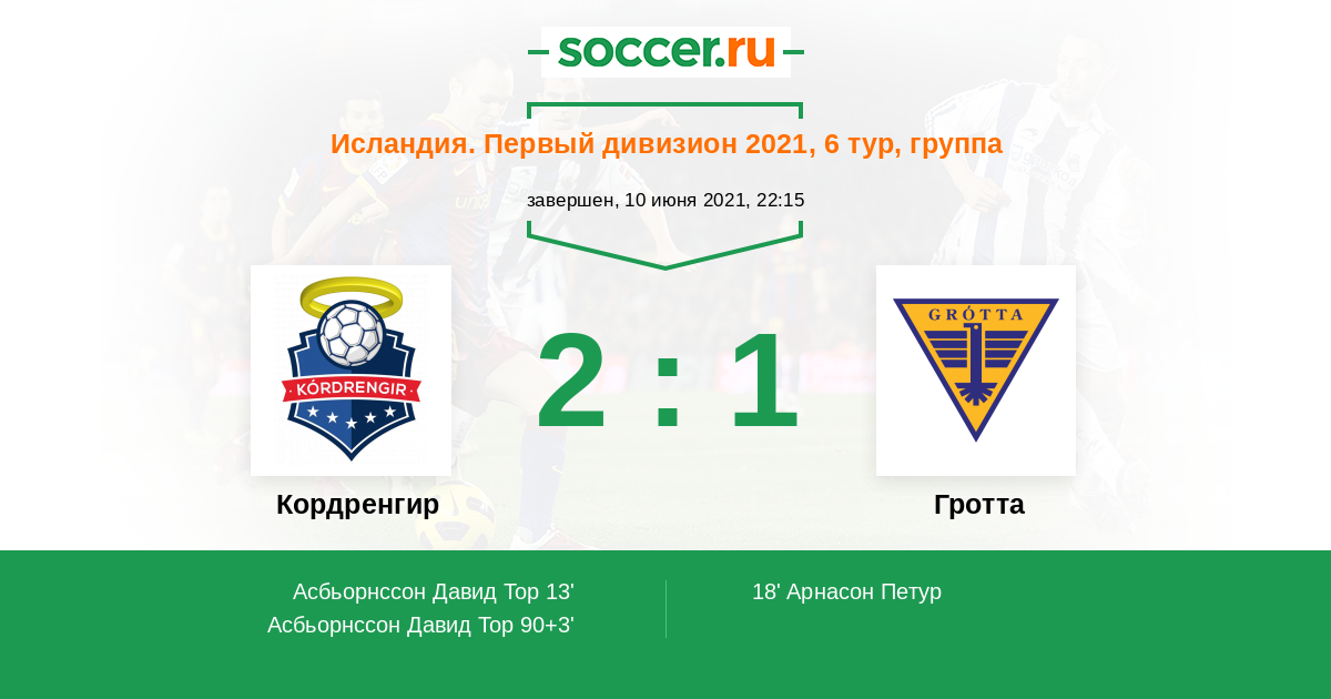 90+3' (2:1) Асбьорнссон Давид Тор