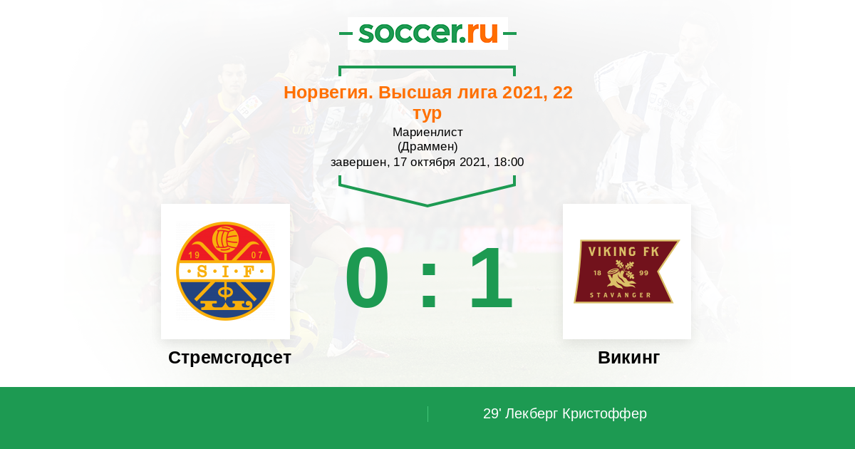29' (0:1) Лекберг Кристоффер (16) (Белл Джо (8))