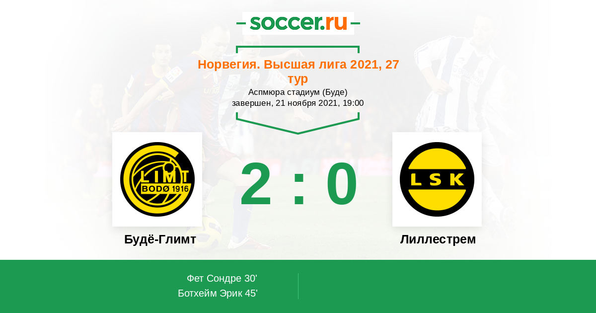 45' (2:0) Ботхейм Эрик (20) (Ветлесен Хьюго (10))