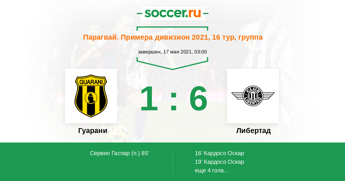 Гол90+2' (1:6) Энсисо Хулио (19) (Богарин Родриго (28))
