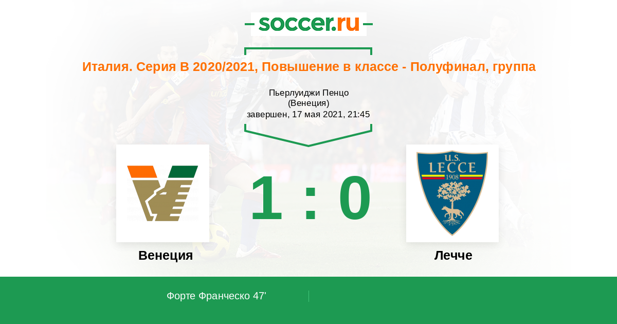 47' (1:0) Форте Франческо (11) (Малех Юссеф (29))