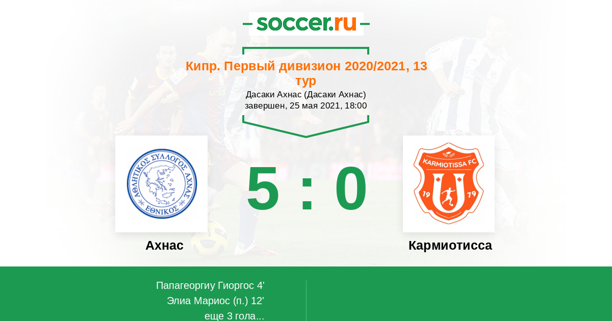 4' (1:0) Папагеоргиу Гиоргос (10)