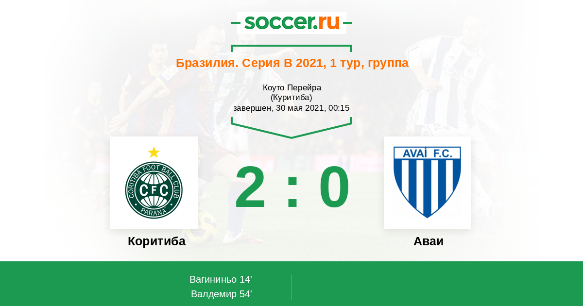 14' (1:0) Вагининьо (13) (Салес Матеус (36))