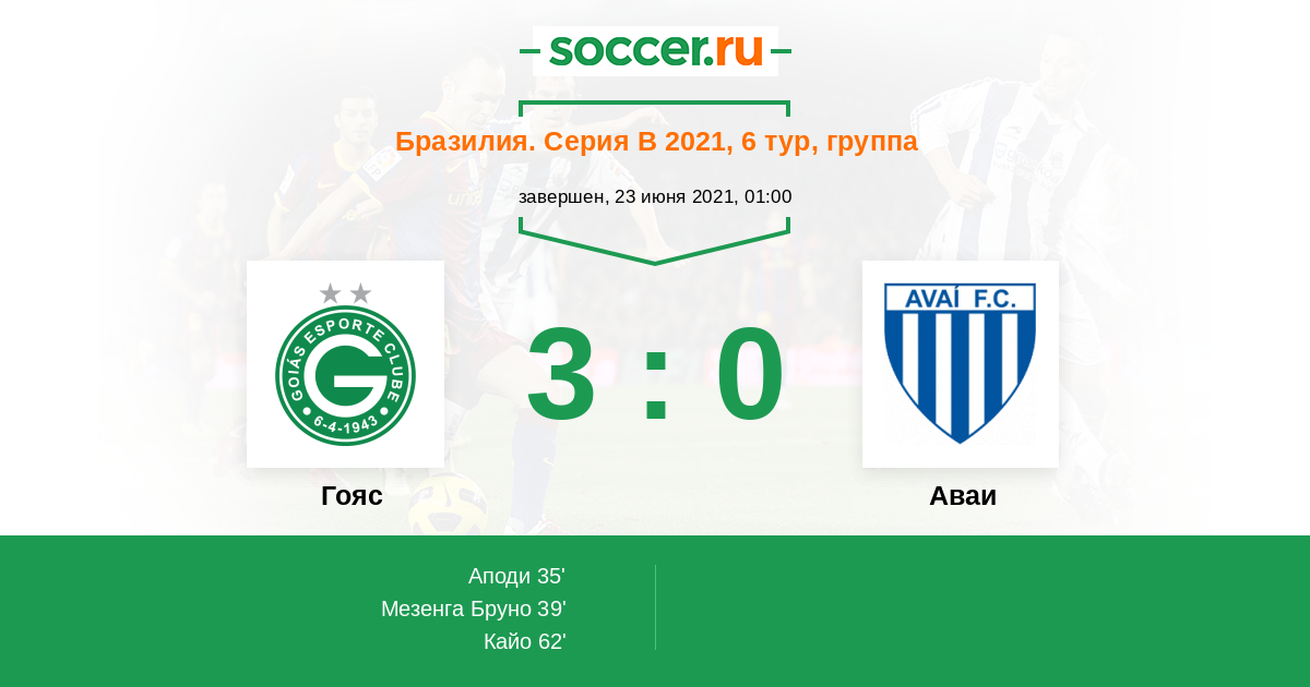 39' (2:0) Мезенга Бруно (9) (Брено (5))