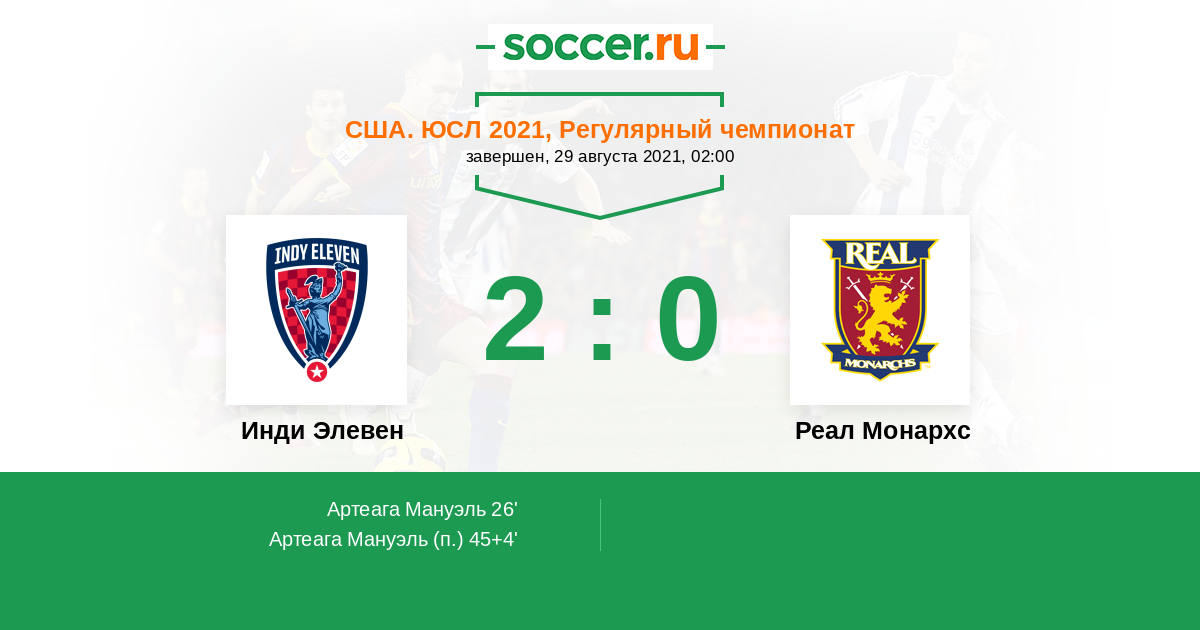 26' (1:0) Артеага Мануэль (29) (Мун Ник (17))