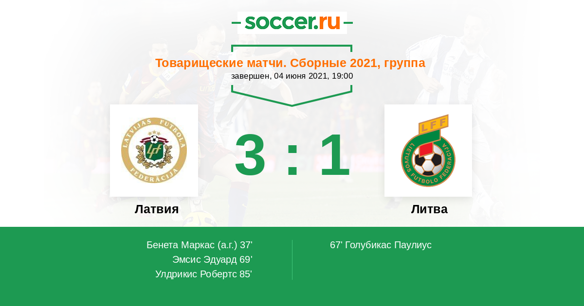 69' (2:1) Эмсис Эдуард (Савалниекс Робертс)