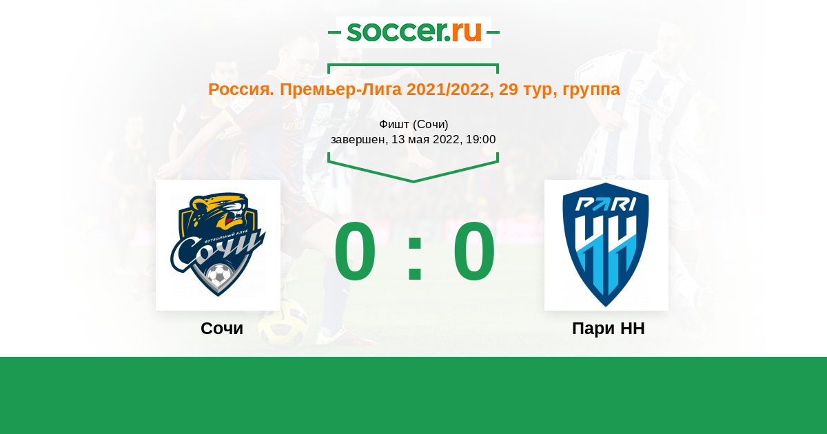 Клубы Сочи, Зенит и Нижний Новгород объединяет схожесть между собой, можно их в какой-то степени назвать "фарм клубами" Уверен, что Сочи бы отдали очки Нижнему Новгороду если решили свои вопросы, но Сочи может побороться за серебрянные медали или удержать бронзу, поэтому Сочи не будет сливать матч. Думаю, что команды обменяются голами. Были бы еврокубки, Сочи тем более боролись за 2 место вне себя.