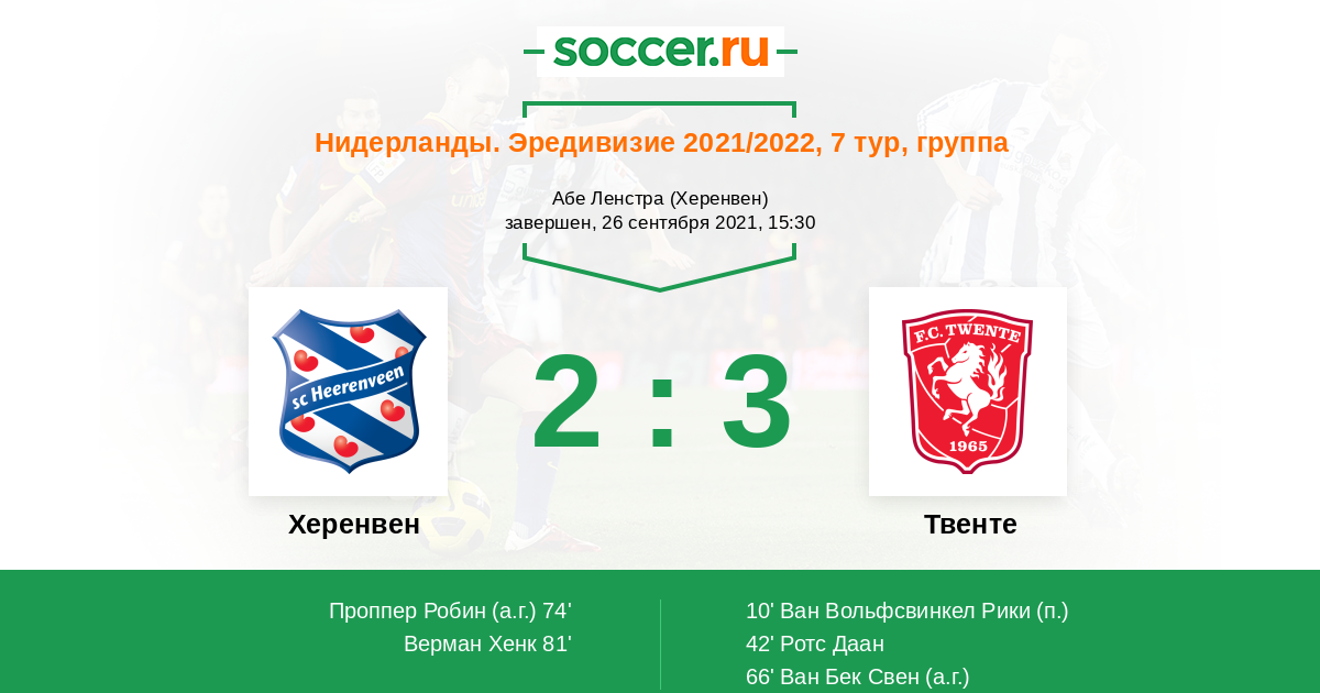 66' (0:3) Автогол Ван Бек Свен (4)
