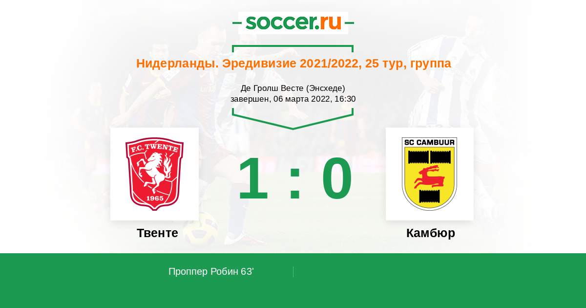 63' (1:0) Проппер Робин (3) (Ван Вольфсвинкел Рики (13))