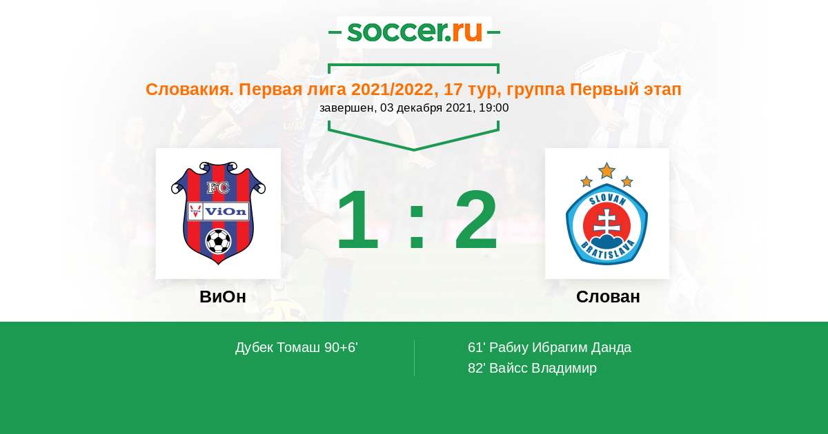 90+6' (1:2) Дубек Томаш (26) (Слобода Антон (8))