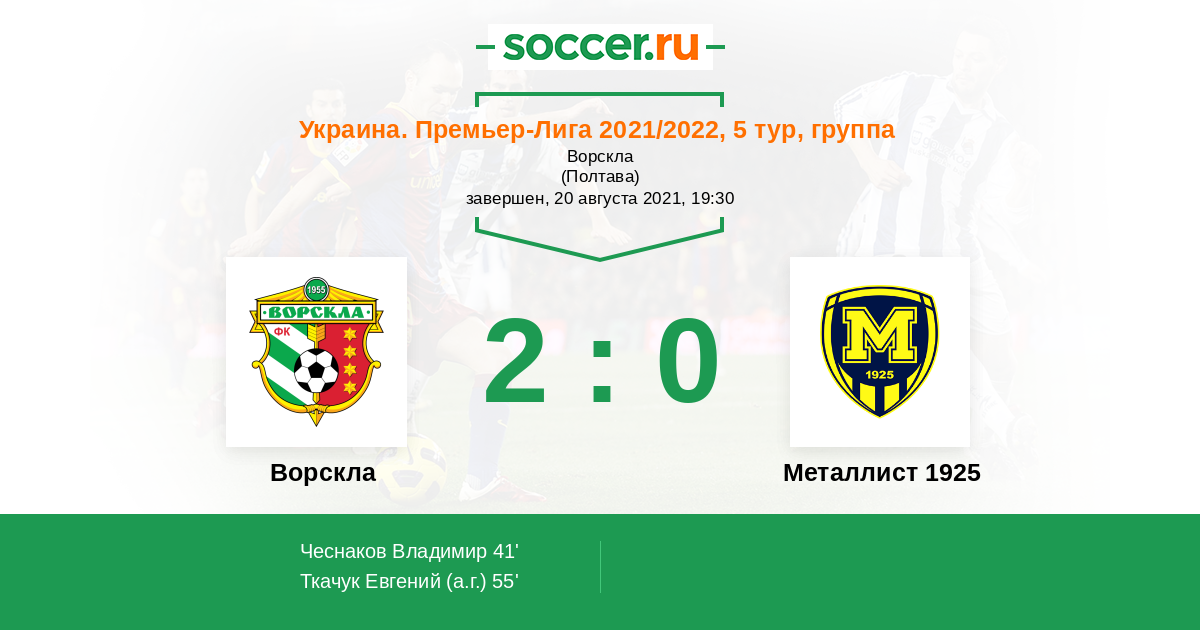 55' (2:0) Автогол Ткачук Евгений (3)