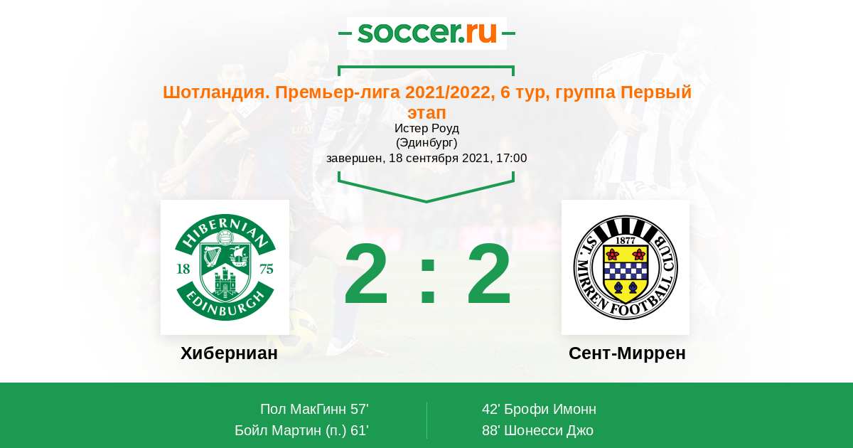 57' (1:1) Пол МакГинн (6) (Аллан Скотт (23))