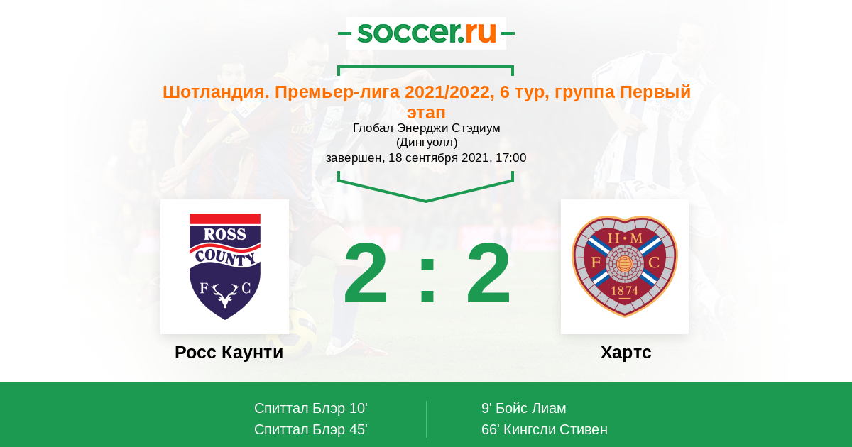 45' (2:1) Спиттал Блэр (7) (Чарльз-Кук Риган (17))