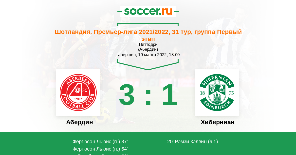 20' (0:1) Автогол Рэмзи Кэлвин (22)