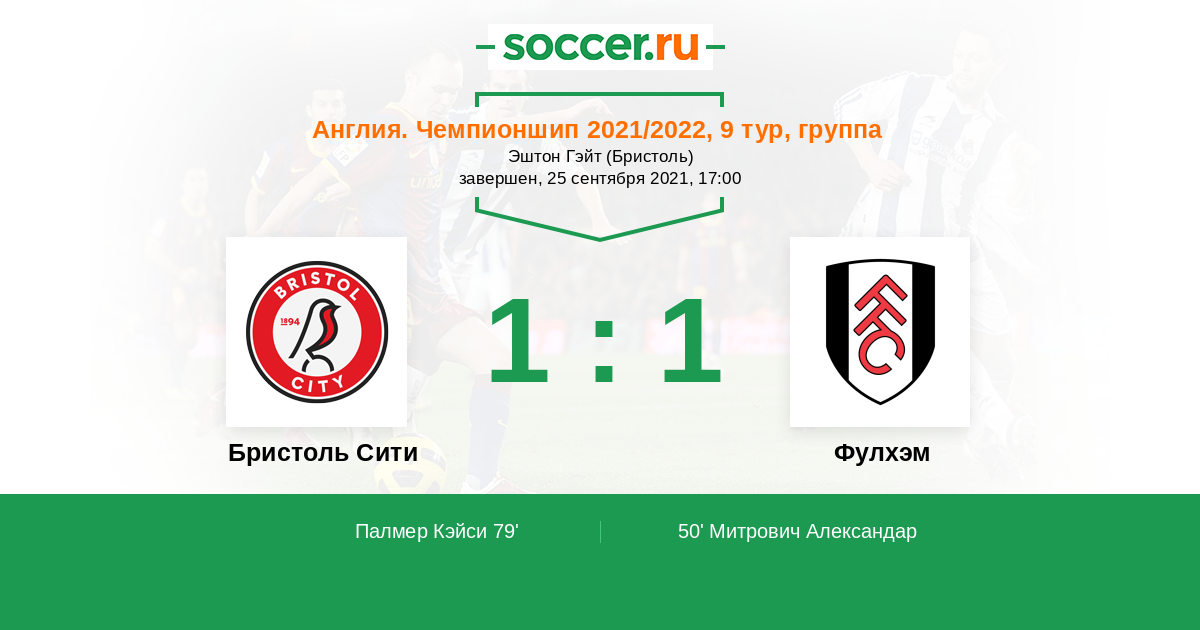 50' (0:1) Митрович Александар (9) (Уилсон Гарри (8))