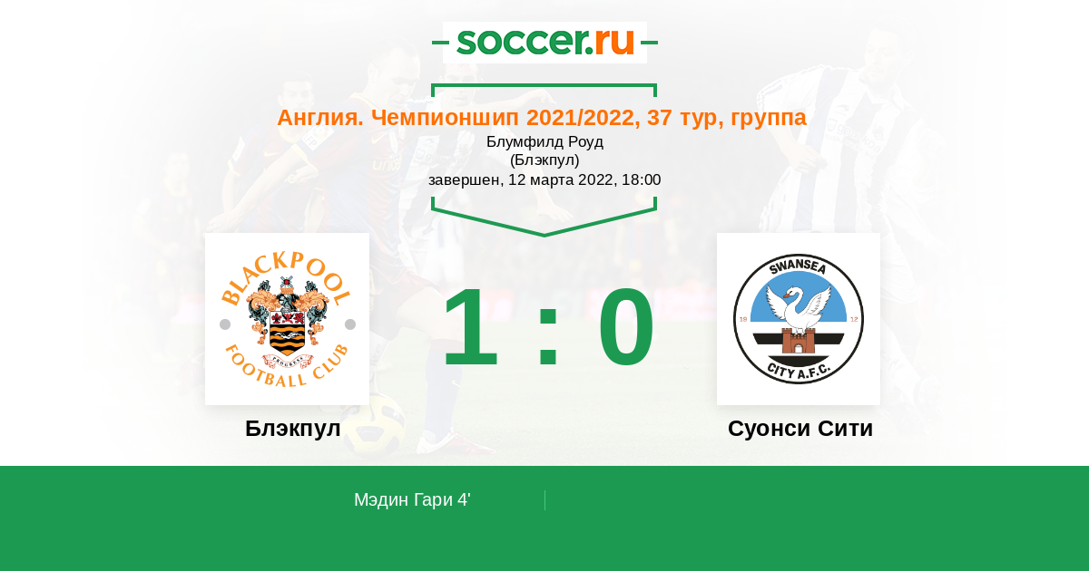 4' (1:0) Мэдин Гари (14) (Кирк Чарли (27))