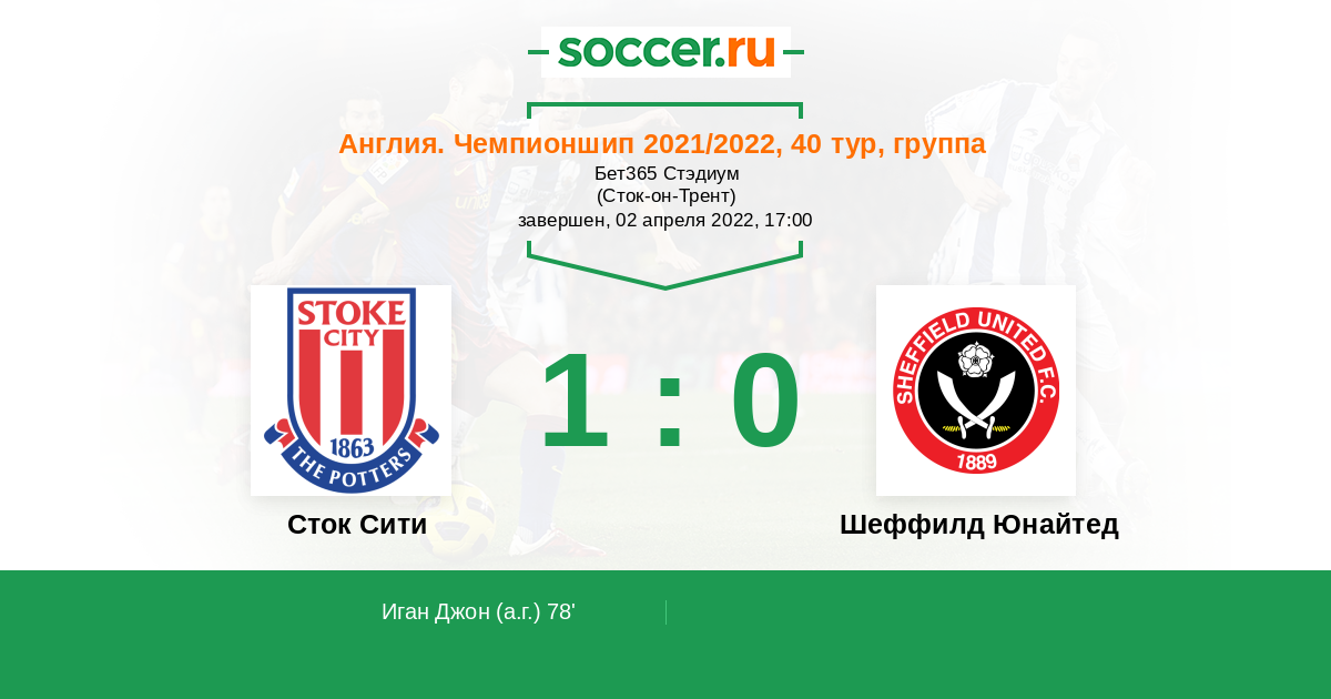 Стадион Бет365 Стэдиум (Сток-он-Трент), зрителей: 22631