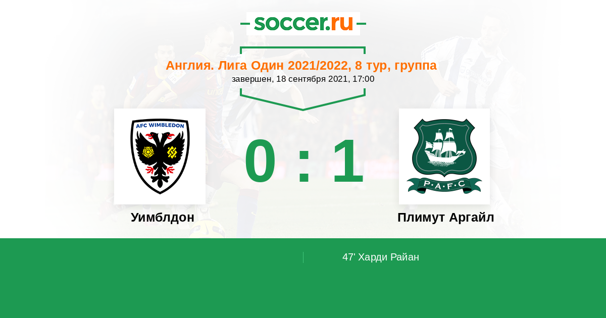 47' (0:1) Харди Райан (9) (Джеймс Уилсон (5))