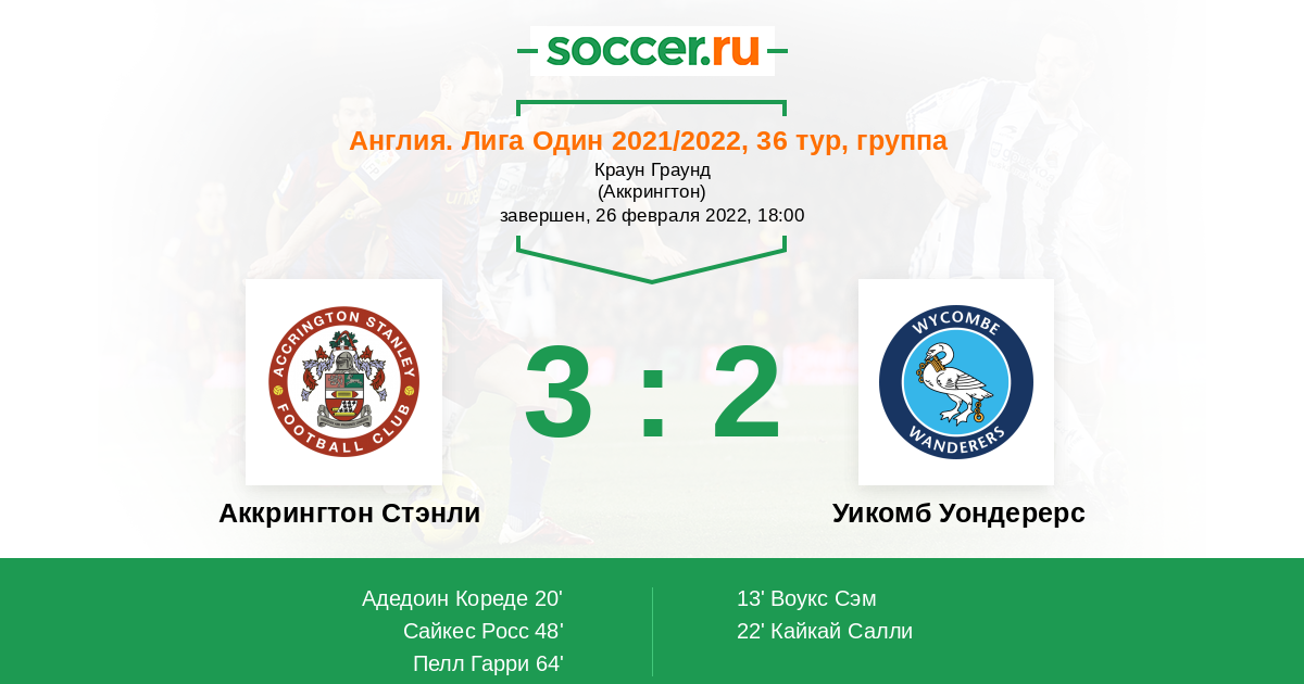 48' (2:2) Сайкес Росс (5) (Пелл Гарри (8))